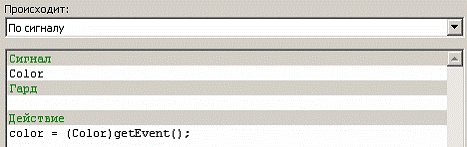срабатывать по сигналуColor и выполнять действиеcolor=(Color)getEvent() (рис.
