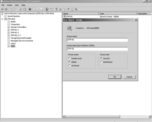 вводим соответствующее имя создаваемой группы, в нашем случае: "EVM-82-1GPO"