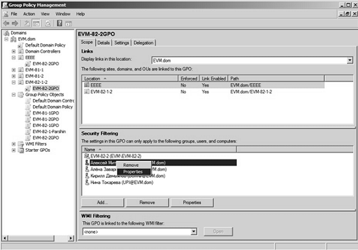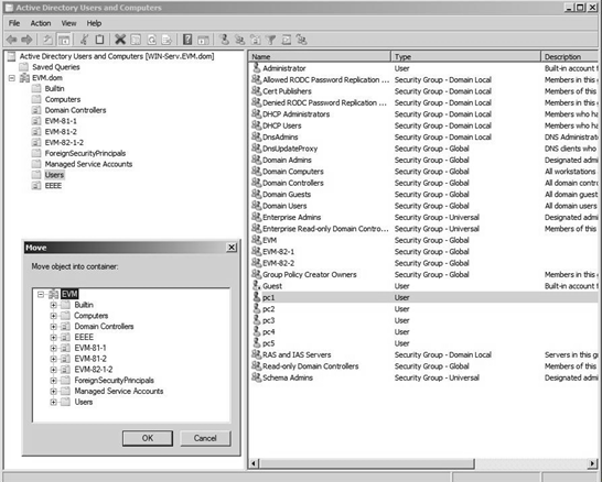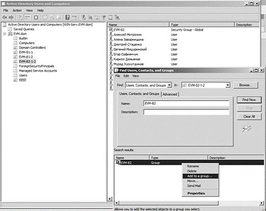контекстное меню на имени домена: ПКМ(EVM.dom)