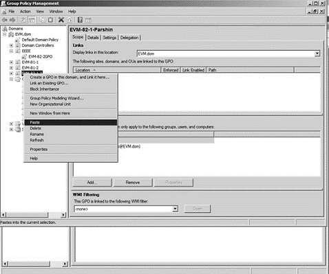 Рисунок 8. Вставка скопированной GPO в модуль.