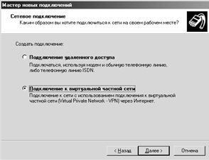 подключение. В данном случае мы настраиваем "Подключение к виртуальной
