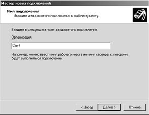 подключения. Нужно ввести в соответствующее поле имя организации (рис. 21).