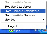 Start UserGate Statistics контекстного меню агента в системном трее или через
