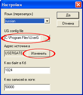 интерфейса, изменения пути к файлу конфигурации, количество записей в логе и