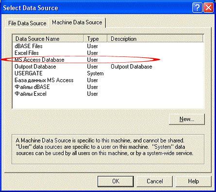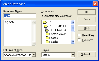 данных MS Access - New - укажите сетевой путь к файлу log. mdb на сервере.