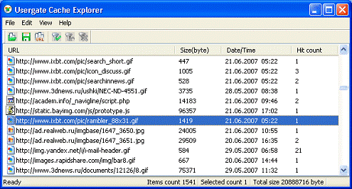 Вы можете просматривать файлы кэш, фильтровать, сохранять.