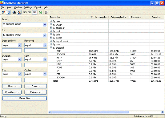 будет сформирован отчет (по пользователям, протоколам и интервалу времени).
