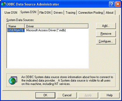 данных (ODBC) на вкладке Системный Для DSN в USERGATE должен быть указан путь к
