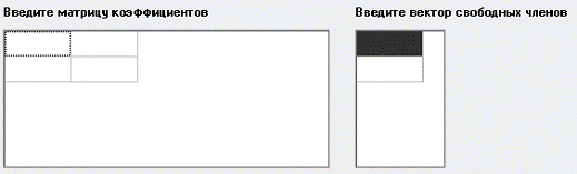 ввести матрицу коэффициентов и векторов свободных членов (рисунок 2.6.1).