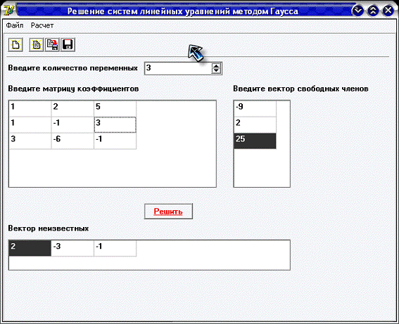 · Модуль решения СЛАУ методом Гаусса.