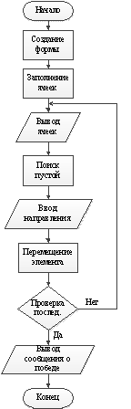 игрового поля и заполнения его элементами заданного массива.