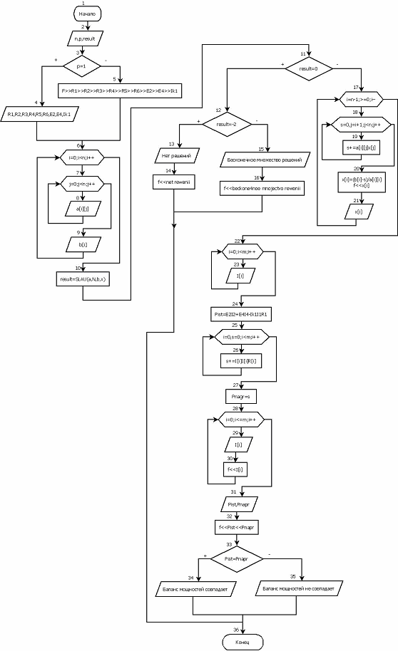рис. 1.1), проверить баланс мощностей. Для решения системы линейных уравнений