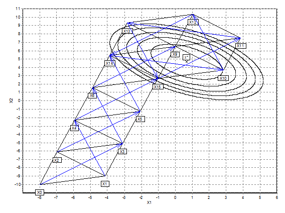 поиск. В случае двух переменных симплексом является равносторонний треугольник,