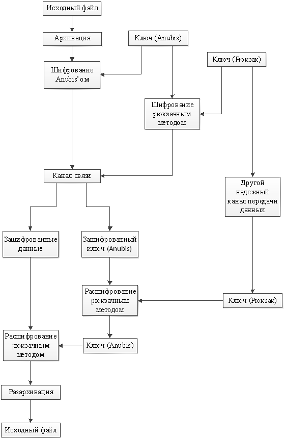 key.txt.code.txt - файл, содержащий ключ алгоритма Anubis, закодированный рюкзачным методом;