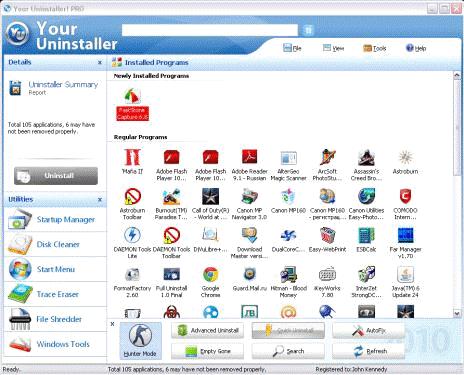 и информативное Главное меню и быстрая работоспособность, среди бесплатных - Your Uninstaller!. Самой плохой утилитой является Full Uninstall 1.0 Final, т.к. она может просто удалять программы, причём