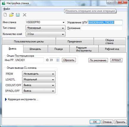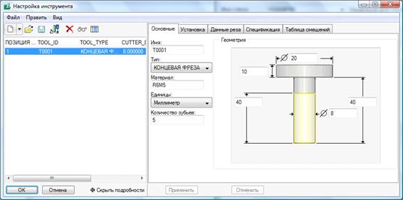 Рис. 6 Настройка инструмента