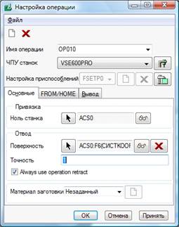 Не закрывая окно Настройка операции задаем ноль станка и плоскость
