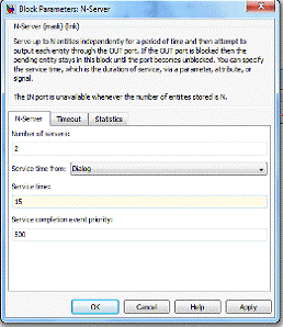 параметры окне N-Server: Number of servers -2, Service time - 15; в окне