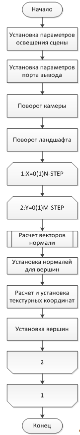 · расчет векторов нормали для каждой точки ландшафта;