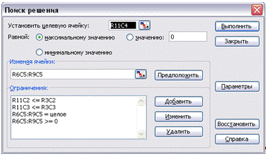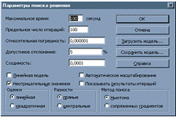 переходим по кнопке Параметры в окно Параметры поиска решений