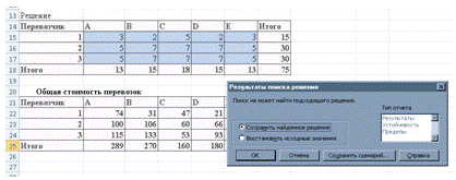 Находим минимальную стоимость перевозки. Результат решения задачи на рис. 3.6 :