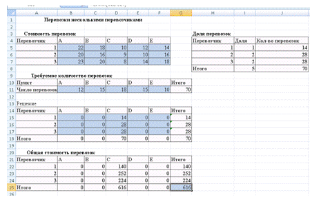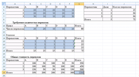 количестве перевозок (рассмотреть решение данного вопроса средствами Excel)