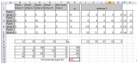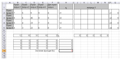 столбцом - пункт распределения. Кроме того, в этой таблице в i-й