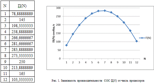 ≈ 283,9 сообщ./с. (см. рис. 1).