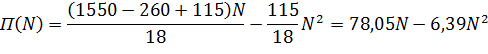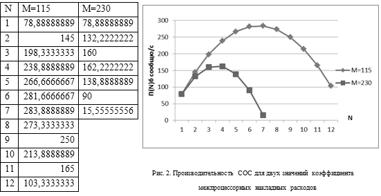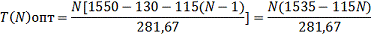 = 1550, Р = 130 и М= 115, оптимальное число процессоров равно