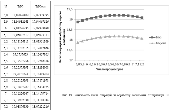 процессоров под номерами свыше 75. Так как К = 19 копий система сообщений стоит