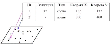 это произвольно расположенные точечные объекты в качестве атрибутов имеющие