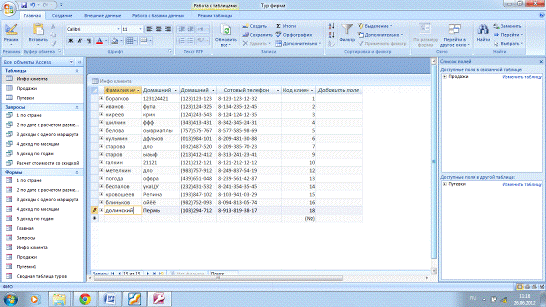 Структура таблицы «Инфо клиента»