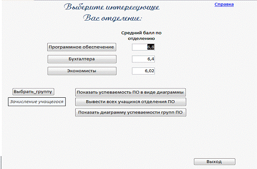 ПО» откроется форма, которая показывает успеваемость всех групп отделения