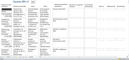 каждого студента можно указать дополнительную информацию (сведения о родителях,