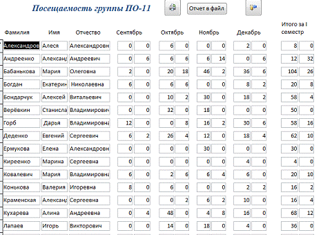 следить за учебным процессом группы, легко и быстро получать семестровый отчет