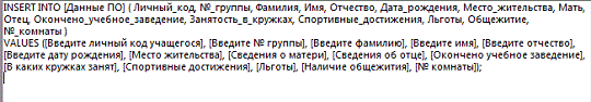 занесение учащегося в таблицу в режиме диалогового занесения данных: