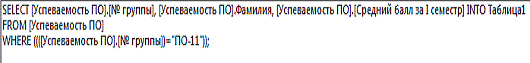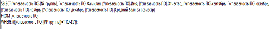 «Успеваемость ПО», затем выбираем поля, которые должны отображаться в таблице.