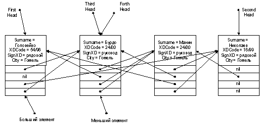 Рисунок 5 - Обход списка по четвертым указателям