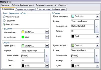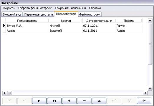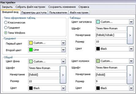 реализована возможность настройки внешнего вида и уровня доступа пользователей.