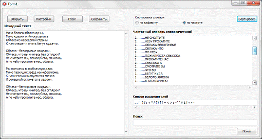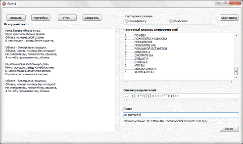 словосочетаний по заданному тексту (под словосочетанием подразумеваются два