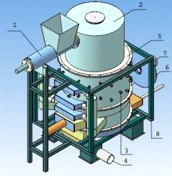 отбора золы; 5.Корпус реактора; 6.Проточный вентилятор; 7.Аэродинамический