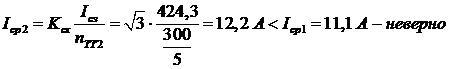 Первичный ток срабатывания выбираем больший из рассчитанных: