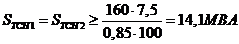 блочных трансформаторов Т1 и Т2 осуществляется из условия: