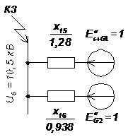 ТВФ-63-2У3 равно 10,5кВ, КРУ подсоединяем к блоку через реакторы Р1 и Р2.