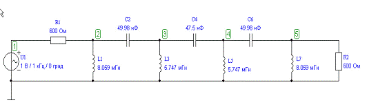 Рис 1.2 Схема ФПНЧ 7-го порядка в