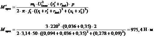 расчета рабочих характеристик при номинальном скольжении принимаем