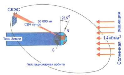 солнечной космической электростанции на Землю в виде СВЧ излучения.
