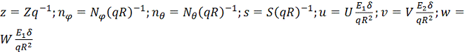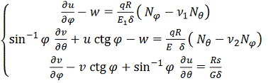 (кг/м); перемещения- безразмерные (доли R). Система координат - сферическая.