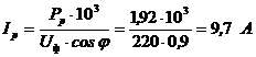 Ррасч. = 5,78 кВт, Iрасч = 10,3 А.