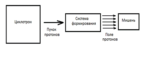 из циклотрона выходит точечный (диаметром 3 мм) пучок протонов, то между ней и